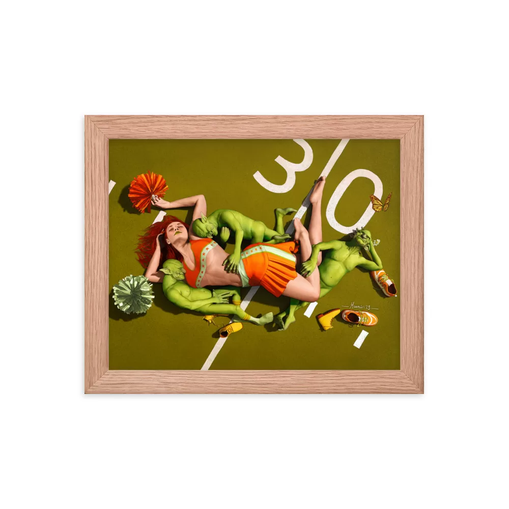 Zenifiez votre espace de jeu avec notre affiche encadrée de gobelins et pom-pom girl assoupis, imprimée sur un papier épais et mat. Le cadre est fabriqué à partir de bois provenant de forêts gérées de manière durable.