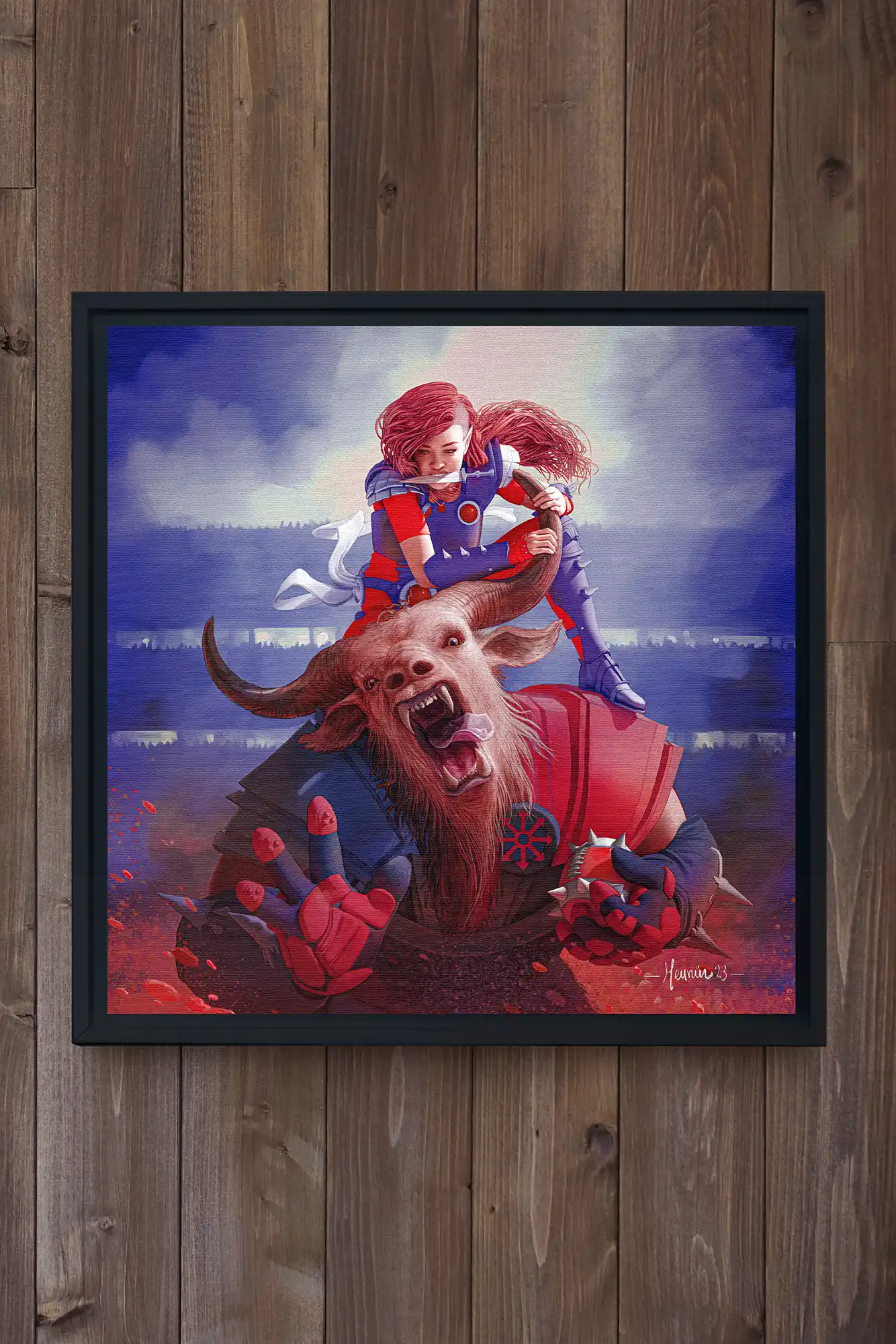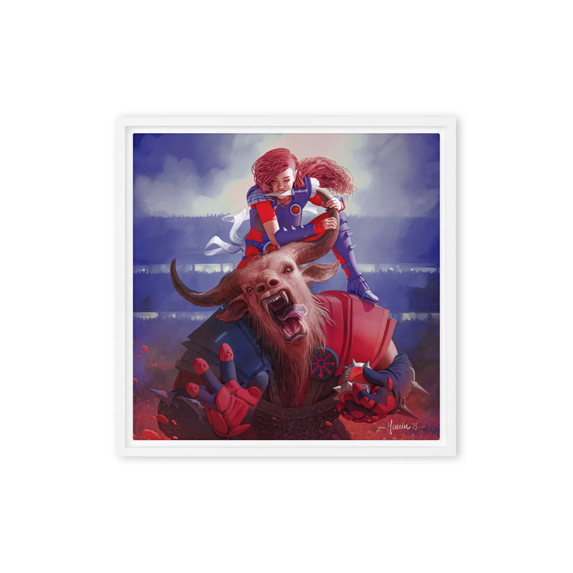 Kill the frenzy with our trusty dagger framed canvas! This high-quality pine tree framed canvas comes with rubber pads on the back corners and wall mount that makes hanging the artwork hassle-free. What’s more, the frame gives the canvas a cool floating effect!
